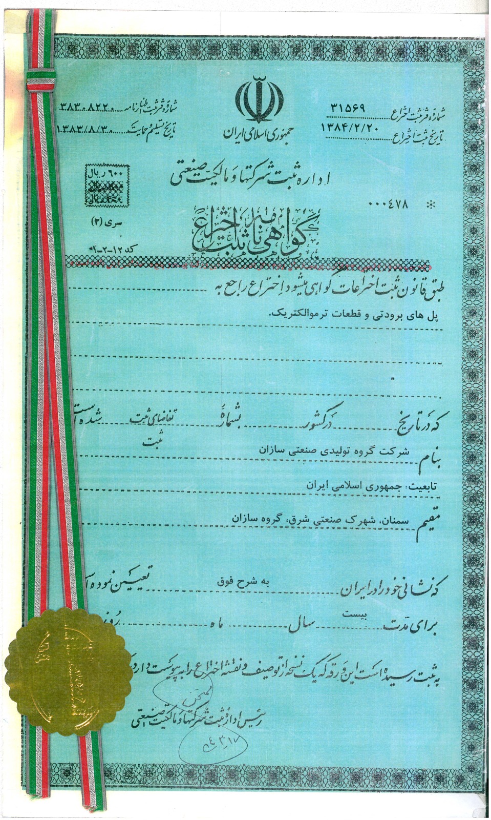 SAZAN GROUP / ثبت اختراع ترموپیل
